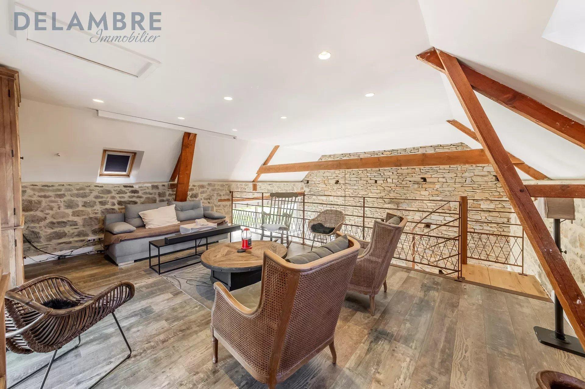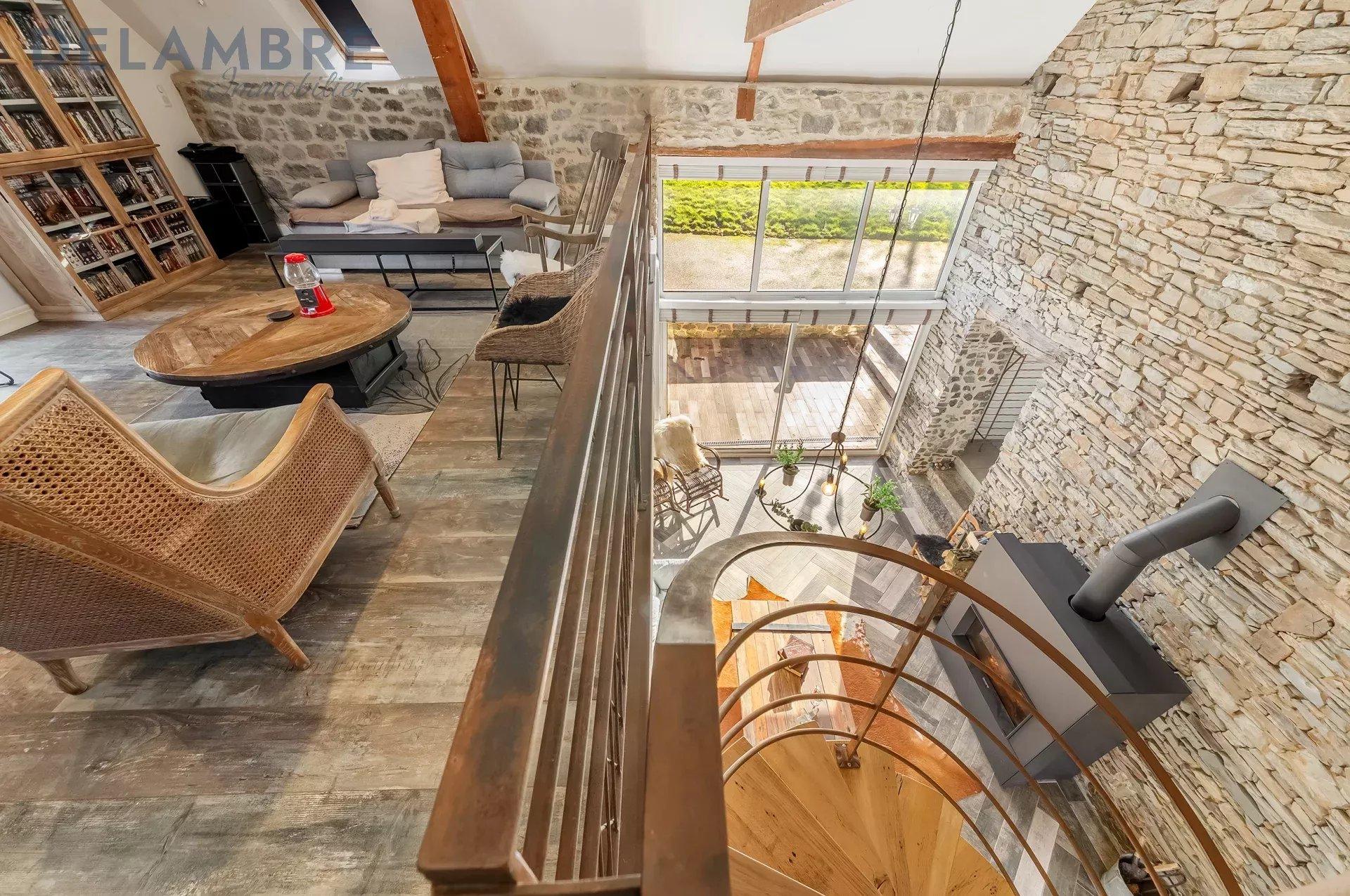 Charme de l’ancien préservé : poutres, murs en pierres apparentes
